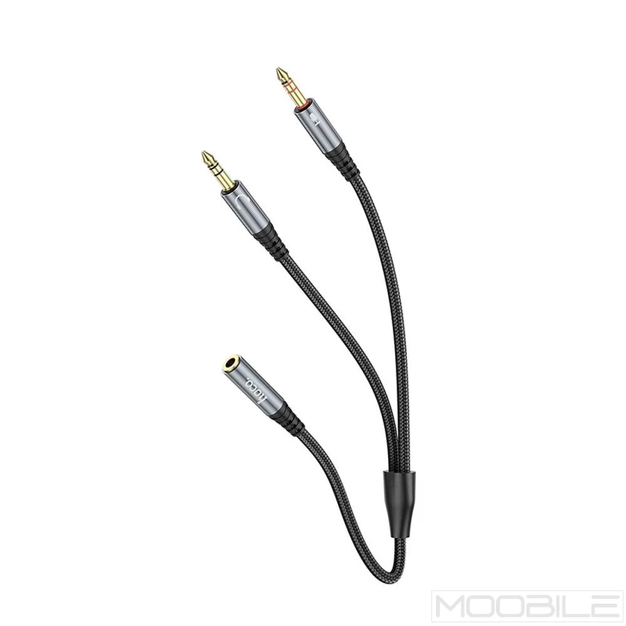 A Hoco UPA21 AUX 2 az 1-ben kábel praktikus megoldást kínál, ha egyetlen 3,5 mm-es jack kimenettel rendelkező eszközt szeretnél két hangfogadóhoz csatlakoztatni. Ideális választás zene megosztásához, például két fejhallgató, hangszóró vagy audiorendszer egyidejű használatához.