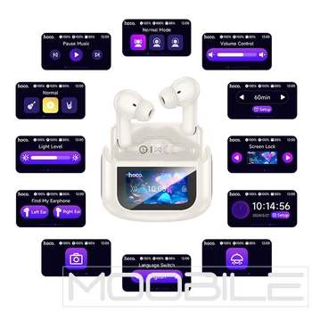 Hoco EQ21 vezeték nélküli fülhallgató, érintőképernyővel, TWS, ANC + ENC – Fehér