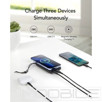 USB-C és Lightning port + USB-A–USB-C kábel mellékelve
