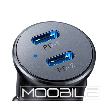 Kettős USB-C port: két eszköz egyidejű, nagy teljesítményű töltéséhez