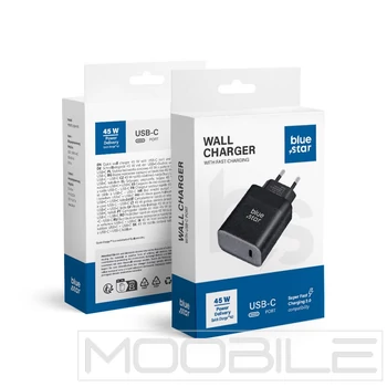 Blue Star USB-C hálózati gyorstöltő 45W PD / QC 4.0 / Super Fast Charging 2.0 – Fekete