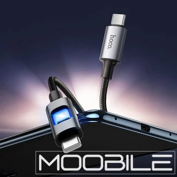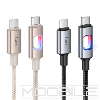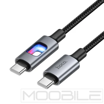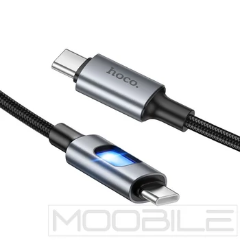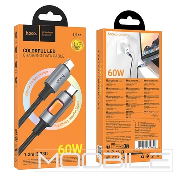 Hoco U144 USB-C – USB-C gyorstöltő kábel LED világítással 60W 1,2 m – Fekete
